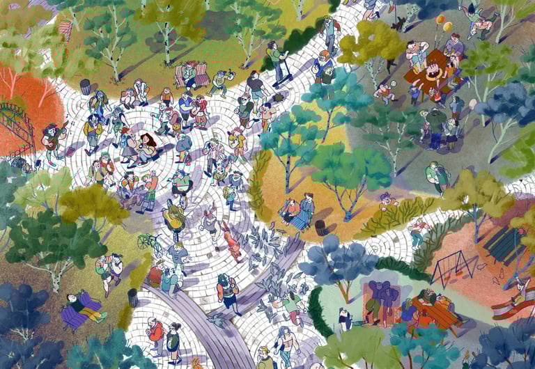 Themed competition in memory of Sergio Fedriani, a Genoese painter and illustrator. The theme for 2024 was "surprise." I therefore wanted to represent many moments of surprise in a single illustration.